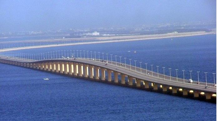 Sau đó đoàn di chuyển đi qua cây cầu nối Bahrain với khu vực phía đông của Ả Rập Xê Út – Cây cầu King Fahd Causeway