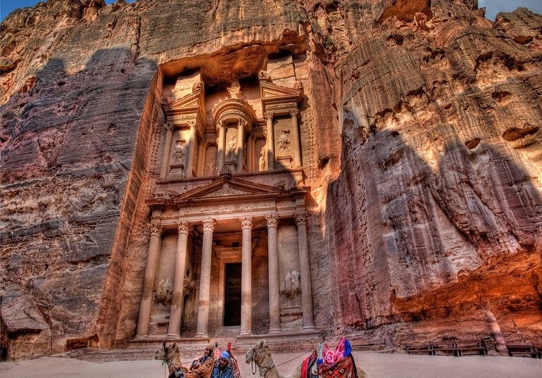 – Petra - khu di tích khảo cổ ở miền tây nam Jordan, được nhà thám hiểm người Thụy Sĩ Johann Ludwig Burckhardt khám phá vào năm 1812. Năm 1985, thành phố hoa hồng được tổ chức UNESCO công nhận là Di sản Văn hóa Thế giới và được xem là một trong những tài sản văn hóa quý giá nhất của nhân loại, là một trong những điểm du lịch nổi tiếng với nhiều công trình kiến trúc và tượng đài được chạm trổ tinh xảo trên vách đá. Nếu người Ai Cập tự hào với thế giới về kim tự tháp, thì người Jordan coi Petra là biểu tượng của vương quốc mình.