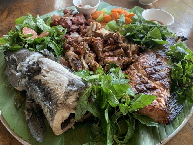 19h00: Qúy khách thưởng thức cỗ lá với những món ăn đặc sản đồng bào dân tộc Mường và