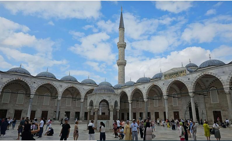 Thánh đường Xanh (Blue Mosque) – biểu tượng Hồi giáo lộng lẫy giữa lòng Istanbul, nổi bật với sáu ngọn tháp và mái vòm uy nghi. Nội thất được lát hơn 20.000 viên gốm màu lam tinh xảo, tạo nên vẻ đẹp trang nghiêm và thanh thoát.