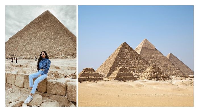 - Kim tự tháp Menkaure (Mycerinus), bên cạnh là Tượng nhân sư Sphinx - Tượng đầu người mình sư tử với mình sư tử dài 45m, chân dài 15m được tạc từ một tảng đá nguyên khối, thể hiện sức mạnh và quyền lực thánh thần của các vị Pharaoh.