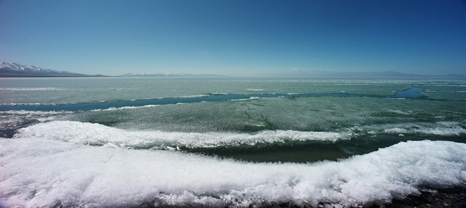 Sayram vào mùa đông là một báu vật bị bỏ quên nơi trần thế. Khi mùa đông đến, mặt hồ đóng băng, trở nên phẳng lặng như một tấm gương khổng lồ phản chiếu bầu trời, tựa như một viên ngọc bích xanh lam lấp lánh giữa thiên nhiên hùng vĩ.