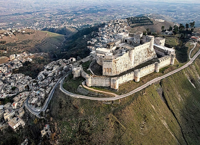Sau bữa sáng, xe đưa đoàn (67 km) đến khám phá một trong những tòa lâu đài ấn tượng nhất thế giới. Krak des Chevaliers được xây dựng vào thế kỷ XII trên một ngọn dồi có khu vực xung quanh rất màu mỡ và được hưởng lợi từ các dòng suối và lượng mưa dồi dào. Bá quốc Tripoli (County of Tripoli), một trong các quốc gia khai sinh từ Thập tự chinh, đã ban tặng bất động sản nơi đây cho Y Viện Hiệp sĩ đoàn (còn gọi là Hiệp sĩ dòng Cứu tế) vào năm 1140 để họ xây dựng pháo đài, được hoàn tất vào năm 1170 sau 28 năm thi công.