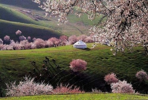 Và mùa xuân từ tháng 3 đến hết tháng 4, khắp vùng bắc Tân Cương rộng lớn hoa anh đào nở rộ khắp các thảo nguyên, thung lũng, núi đồi… hãy thử một lần đến với Tân Cương để cảm nhận sự khác biệt ấy