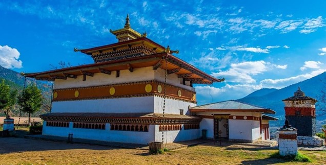 Đèo Dochula (cao 3,088m/10,130ft) nơi đây vị trí đẹp nhất để ngắm dãy núi Himalayas hùng vĩ và thơ mộng. Thưởng thức trà và cà phê miễn phí & Chiêm bái 108 ngôi đền xinh đẹp được xây dựng trên ngọn đồi bởi Nhà vua Ashi Dorji Wangmo vì sự an toàn và an khang của Nhà vua Bhutan.