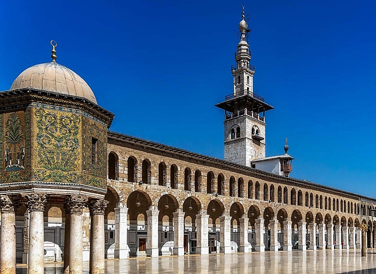 Sau bữa ăn sáng, Quý khách khám phá Damascus. Thành phố có cư dân sinh sống từ năm 3000 Trước Công nguyên. Damascus từng là kinh đô huy hoàng của Umayyad Caliphate, Đế quốc Hồi giáo vào thế kỷ VIII rộng cỡ 11 triệu km2 trải qua ba châu lục. Đoàn viếng thăm al-Jāmiʿ al-Umawī (Nhà thờ Hồi giáo Umayyad) niên đại 715.