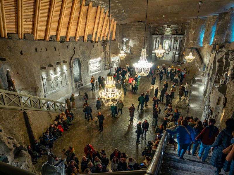Buổi chiều, chúng ta thăm Mỏ muối Wieliczka nổi tiếng thế giới đẹp lộng lẫy dưới ánh đèn, với các tượng Chúa và tượng Đức Gioan Phaolô II làm bằng muối vì Nhà thờ ở trong lòng mỏ muối nên Quý khách sẽ được khám phá thế giới dưới lòng đất bao gồm các mê cung,hang động khổng lồ, hồ ngầm, Nhà nguyện với tác phẩm điêu khắc trong muối kết tinh. Nổi bật bao gồm hồ nước ngầm màu sắc tuyệt đẹp và Nhà nguyện St Kinga – một Thánh Đường được chạm trổ bằng muối rắn nằm dưới lòng đất được Unesco công nhận là Di sản thế giới vào năm 1978.