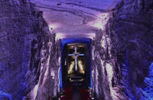 Sau đó, xe và HDV sẽ đưa đoàn đến Zipaquira để tham quan Nhà thờ muối (63km ~ 1 giờ 30 phút lái xe). Nhà thờ độc nhất vô nhị của Colombia không phải là một công trình khổng lồ làm từ muối, mà được xây bên trong một mỏ muối cũ có nghĩa ta phải đi xuống độ sâu khoảng 200m nếu muốn thưởng lãm tổ hợp mang đậm màu sắc Công giáo của nơi này.